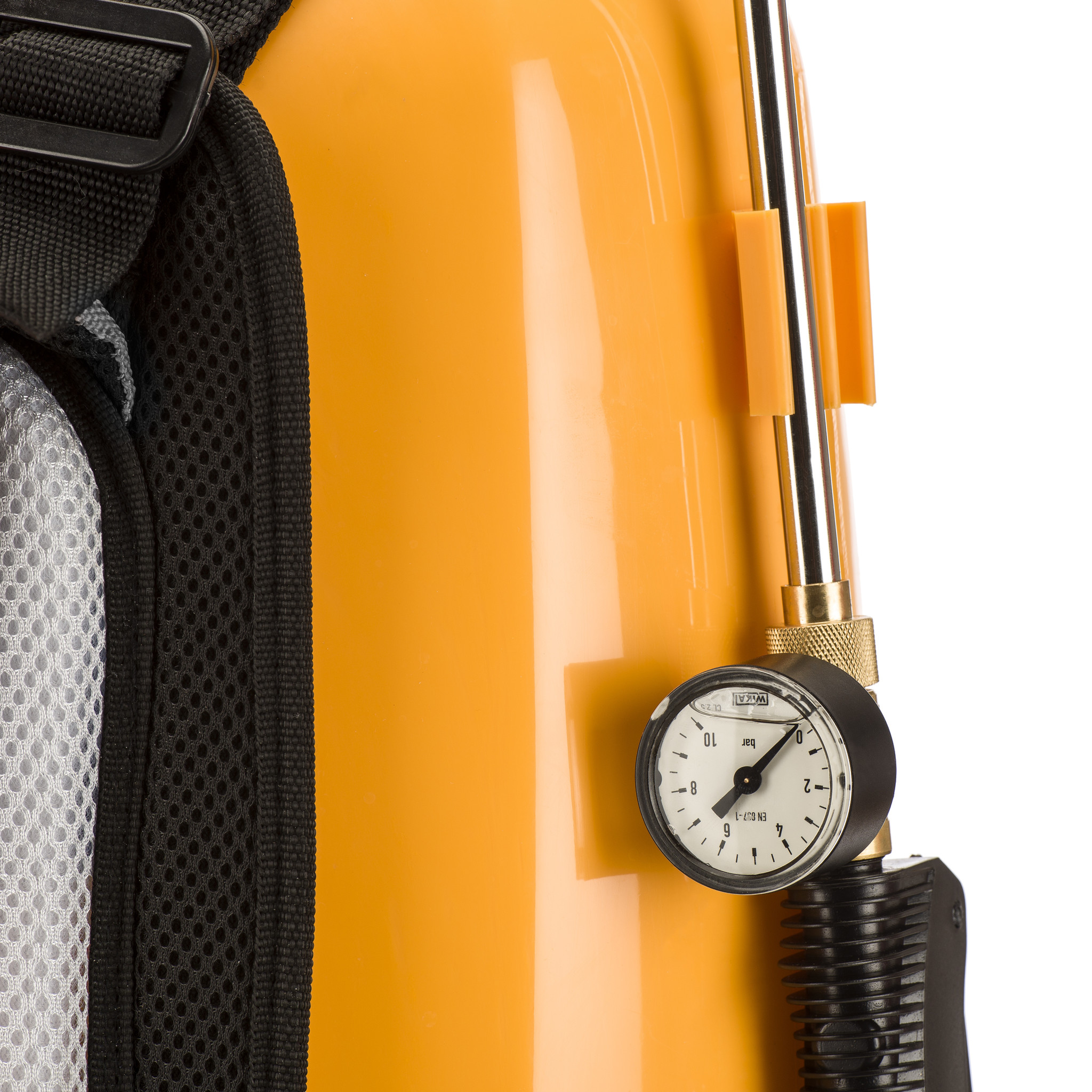 Ein Rucksack-Akku sprüht mit Lithium-Ionen-Akku. Der Druck ist elektronisch regulierbar, sodass Sie mit der verstellbaren Düse immer den richtigen Nebel/Strahl erzeugen können.