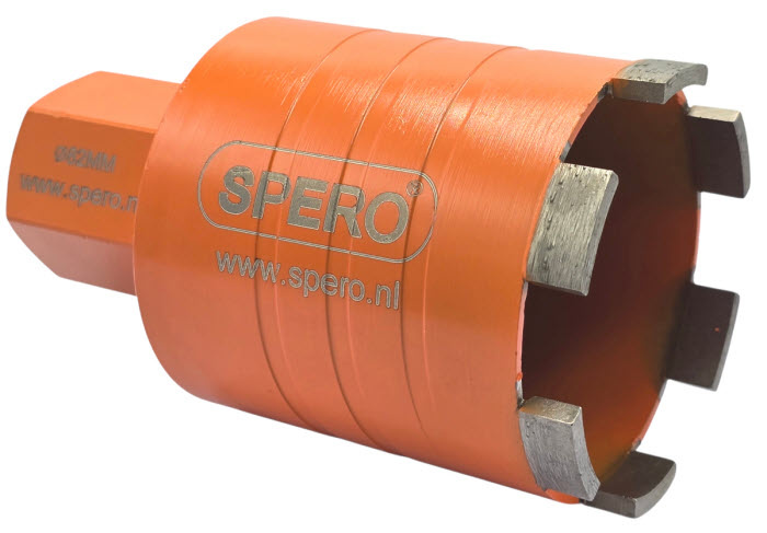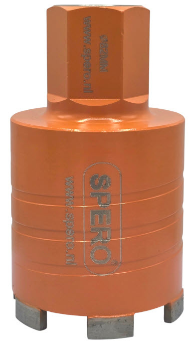 Box drill 6 segments - Wet use + Dry ICM Soft impact 82mm 1 1/4UNC (F) - CONCRETE box drill 6 segments - Wet use + Dry ICM Soft impact Diamond box drill 82mm with 6 diamond segments of 7mm height and a 1 1/4UNC internal thread connection. For wet drilling