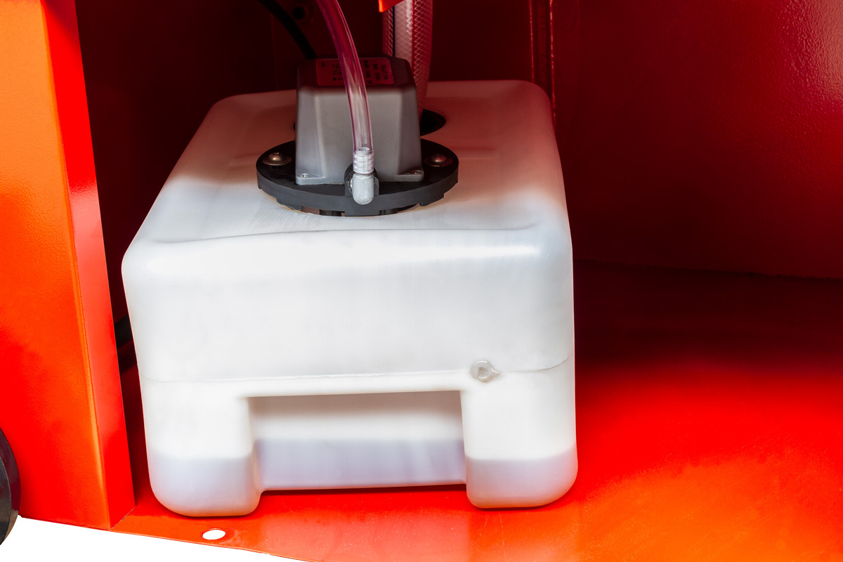 - Lowering speed of the saw arm infinitely adjustable via hydraulic cylinder
