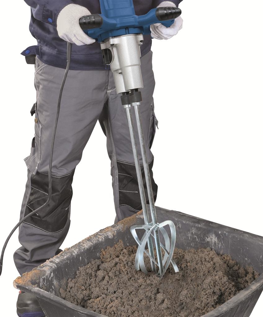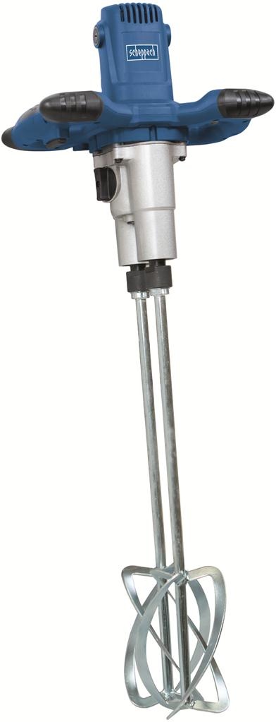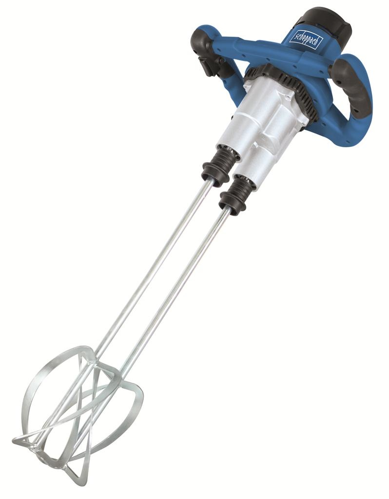 The Scheppach PM1800D has two mixing paddles and a strong 1800 Watt motor for enormous power with light operation to mix even difficult materials, such as liquids and powder-based materials, such as colors, mortar and concrete.