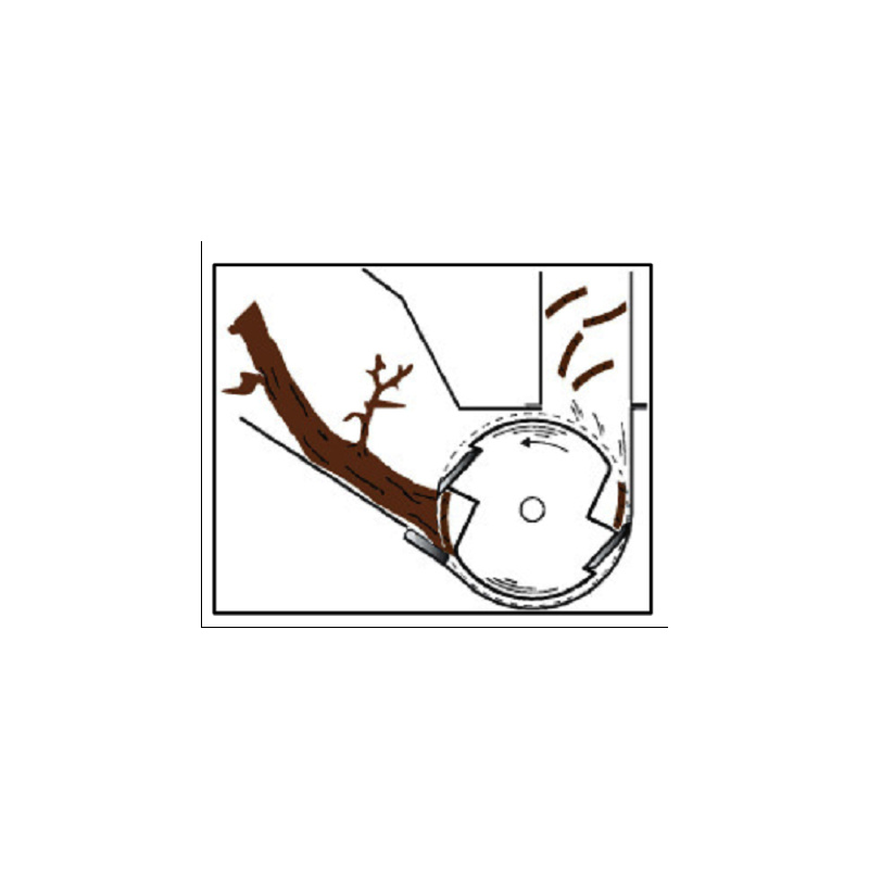 The wood chips are thrown high out of the machine through the drain pipe and the target plate determines the ejection position. The throwing funnel is hinged so that you can easily clean the drum and the ejecting funnel is adjustable so that it can be rotated in any direction. The machine can perfectly shred branches, shrubs, hedges, etc. Green waste (such as pruning waste from a conifer) can also be reduced by the shredder, but the machine is not suitable for only foliage waste (such as ferns). You can of course perfectly use the shredded material as ground cover.