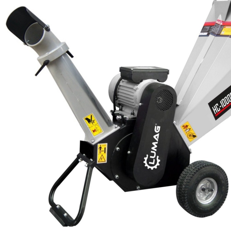 The powerful and compact Lumag HC10E-NL shredder is equipped with a 2200 Watt 230 Volt motor and Duplex manure clutter. The 230 volt electric motor makes the forage harvester naturally a lot quieter than a forage harvester with gasoline engine. The manure drum has 2 blades. These knives run continuously past a counter blade and pull the material to be shredded into the shredder. The shredder can be used for pruning waste from shrubs to trees. The machine can easily be moved on site by the large pneumatic tires. You can easily place a wheelbarrow or collection bag under the ejector to collect the shredded material (eg wood chips).