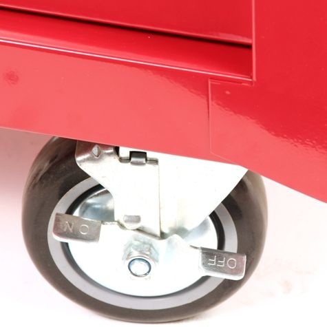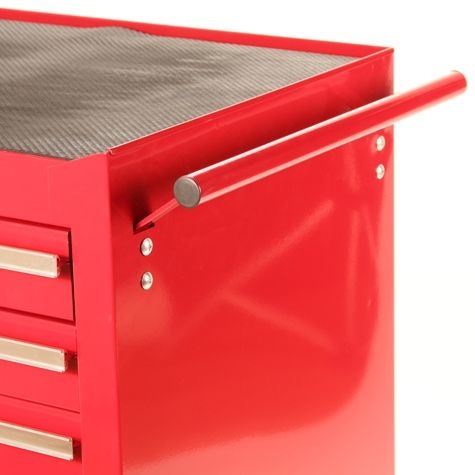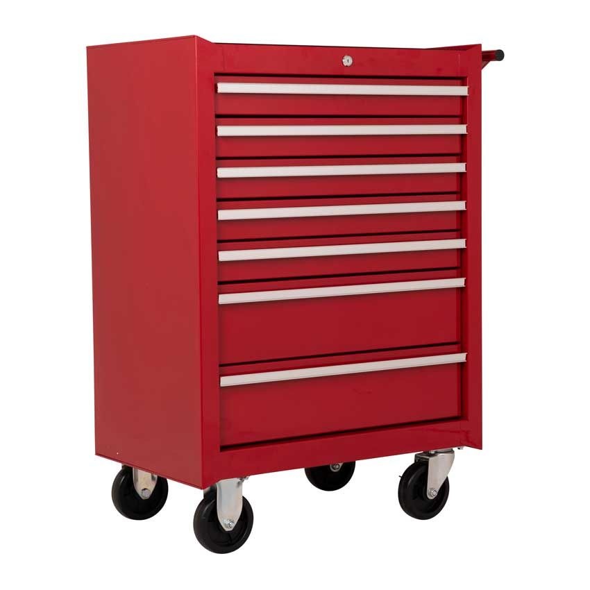 Tool trolley 7 drawers red Tool trolley 7 drawers red Sturdy professional red painted tool trolley on 4 wheels, 2 swivel and 2 braked. Equipped with 7 spacious drawers (ball bearing), 2 of which are extra high, all with foam inlay. Lockable with built-inRead more