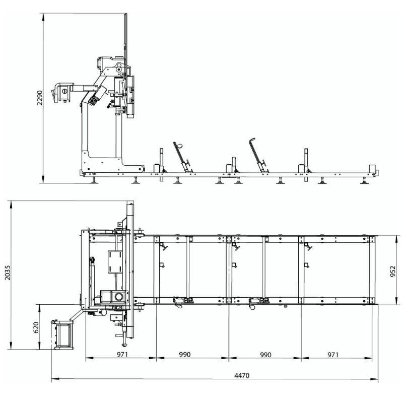 Optioneel kan de machine onbeperkt verlengt worden met extra verlengstukken (per 1950mm). Hierdoor is geen beperking met betrekking tot de maximale boomlengte.