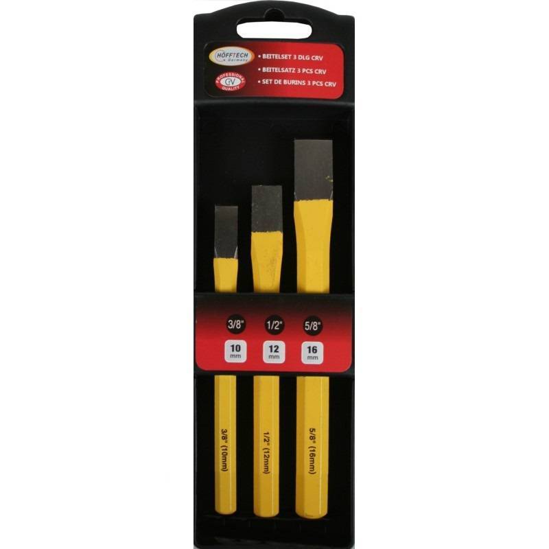 Beitelset 3 Delig Crv 10, 12 en 16 mm 3/8" 10mm 1/2" 12mm 5/8" 16mm