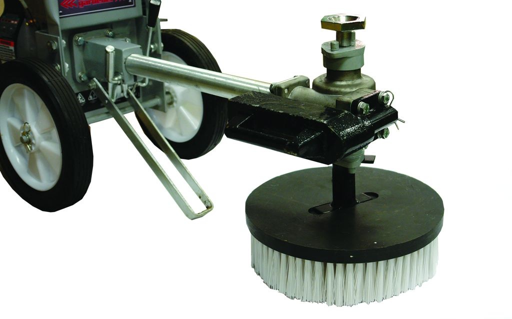 De buitenste elementen zijn te verwijderen voor het krappere werk. De grond in de borders kunnen, afhankelijk van de ruimte, losgemaakt worden met frees of woeler. De kanten kunnen door de kantensnijder gesneden worden en de borstel kan gebruikt worden voor het schrobben van het terras.