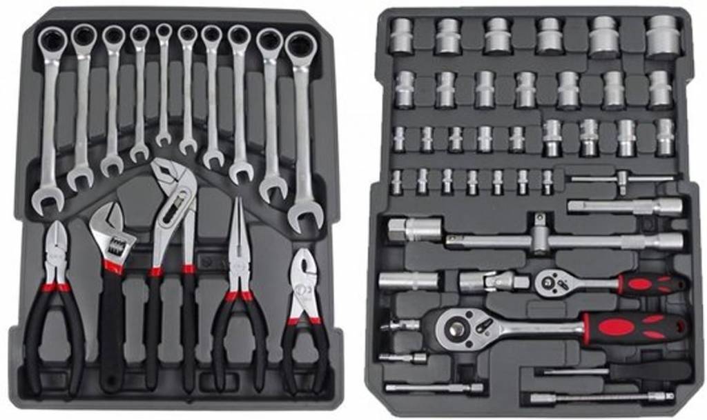 Kunststof gereedschapstrolley gevuld