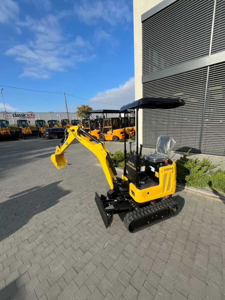 De GG800NX is een compacte, professionele mini graafmachine, ontworpen voor nauwkeurig werk in krappe ruimtes. Met een bedrijfsgewicht van 850 kg en een bakinhoud van 0,025 m³ (380 mm breed), is hij ideaal voor bouwplaatsen, tuinen en boerderijen.