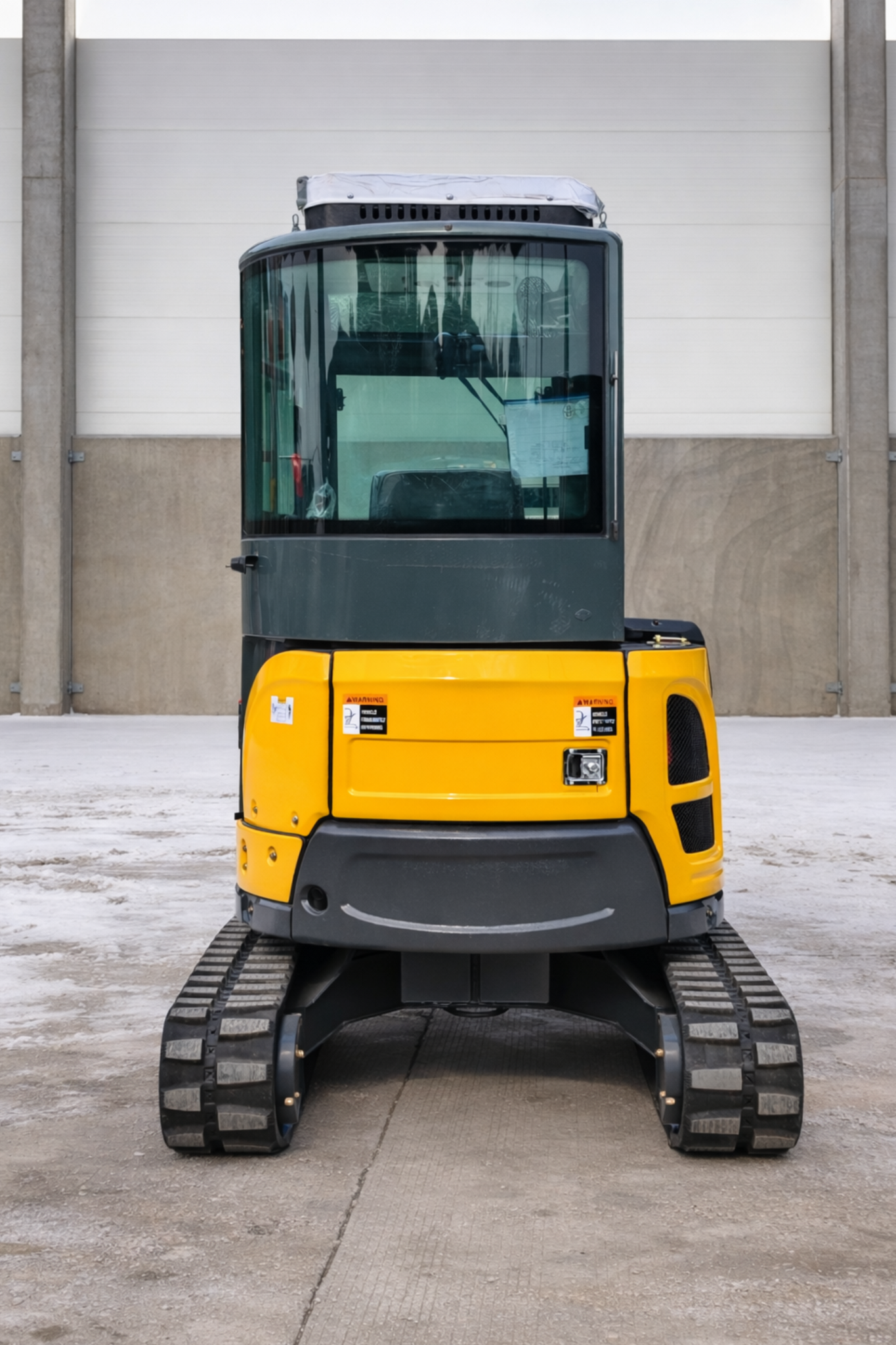 De totale lengte van de graafmachine bedraagt 3950 mm, de breedte 1400 mm en de hoogte 2300 mm. De breedte van het platform van 1330 mm en de platformhoogte boven de grond van 480 mm zorgen voor een stabiele constructie. De minimale draaicirkel van 790 mm maakt comfortabel werken in smalle ruimtes mogelijk, terwijl een bodemvrijheid van 250 mm veilig rijden op oneffen terrein mogelijk maakt.