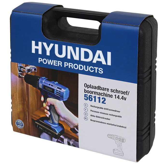 HYUNDAI ACCUBOORMACHINE 14,4V PRODUCTSPECIFICATIES Hyundai Oplaadbare Schroef/boormachine 14,4V - Variabele snelheid 0-700rpm - Koppel instelbaarheid:17+1 - 550 motor - 1x 1300mAh Li-ion batterij - Oplader met laadindicator (oplaadduur 3-5uur) - GS plug,Lees meer
