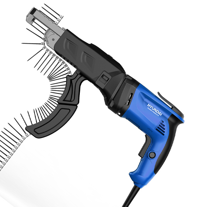 HYUNDAI BANDSCHROEFMACHINE 710W PRODUCTSPECIFICATIES Hyundai Elektrische Schroefautomaat - Vermogen: 710W - Onbelast toerental: 0-4300tpm - Schroefcapaciteit: 9-55mm - Elektronische snelheidsregulering - ""Reverse"" schakelaar Accessoires: - 1x ""AutofeeLees meer