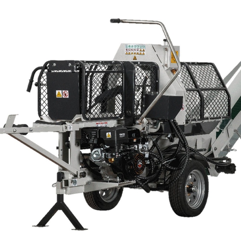 U kunt stammen tot 40cm (cap. tot 45cm) doorsnede aanvoeren. Met een hydraulisch aangedreven kettingzaag zaagt U de stam op de gewenste lengte, het hout valt daarna voor de kloofinrichting die met een hydraulische kloofkracht van 10 ton wordt het hout zal kloven.