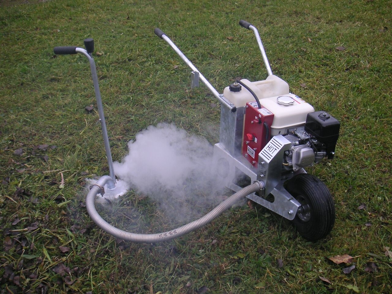 De machine is uitgevoerd met een gegalvaniseerd onderstel en wordt aangedreven door een Benzine motor.
