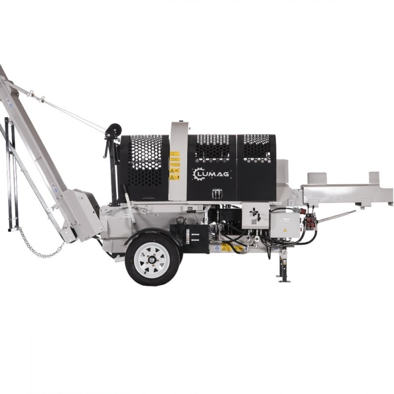 Dit topmodel uit de range professionele 400 Volt aangedreven zaag- en kloofmachines van Lumag combineert drie machines in een.
